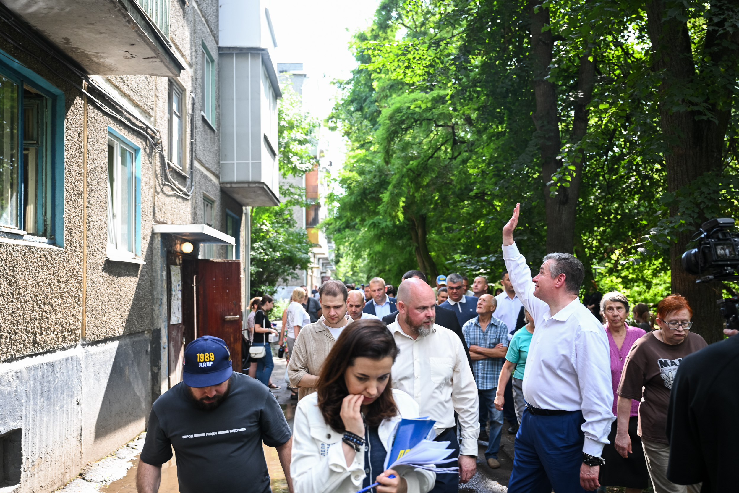 «Люди старшего возраста, которые имеют огромные заслуги перед страной, живут здесь в таких условиях. Это недопустимо! Вот и последствия дробления управляющих компаний: даже то небольшое, за что они отвечают, не делается. Мы это все зафиксировали, систематизируем и разберемся, но то, что я увидел — организационная импотенция! Управляющие компании не выполняют базовых функций. А местные власти разводят руками. Посмотрите: на доме до сих пор висит табличка — «дом образцового содержания», установлена еще в советские годы, но здание в таком состоянии. Это недопустимо!» ‒ заявил Леонид Слуцкий.